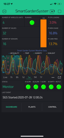 Smart Garden System (or SGS for short) is an introductory, easy to build Raspberry Pi based environmental monitoring and plant watering system using advanced sensors to monitor the soil moisture, monitor the sunlight, watch the air quality and monitor temperature and humidity.