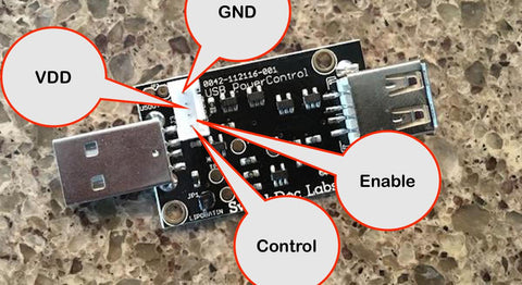 The USB PowerControl board is a USB to USB solid state relay. It is is a digitally controlled power switch for your Arduino or Raspberry Pi. It is a Pi On and Off switch.